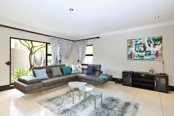 The outdoor spaces are equally impressive, designed for both relaxation and entertainment. A private central courtyard serves as the heart of the home, featuring a sparkling swimming pool and ample space for outdoor seating, perfect for al fresco dining or tranquil moments. Mature trees and lush garden enhance the aesthetic appeal and provide a sense of high seclusion. The property further benefits from a spacious, covered, private patio with built-in braai. And for those long and lazy evenings with friends and family, a custom-built fire boma with ample seating leads off the patio.