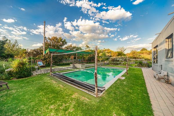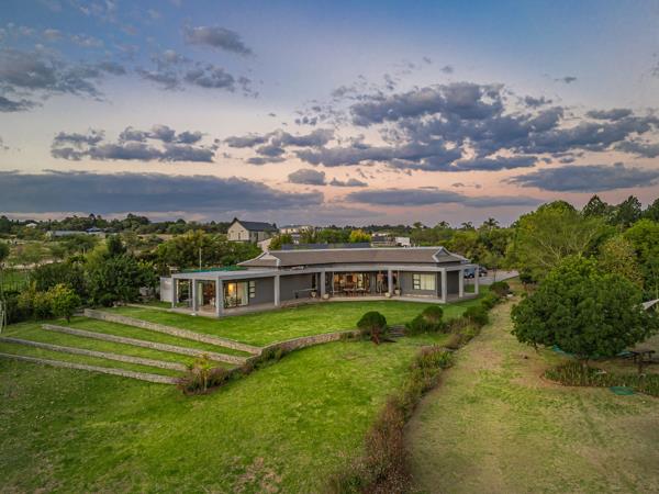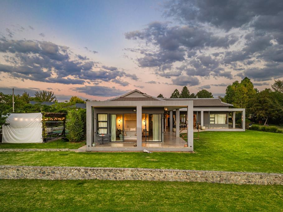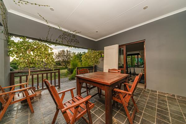 The main house, a masterpiece of architectural design, features four generously sized bedrooms and three well-appointed bathrooms. The master suite is a true retreat, complete with an outdoor shower that allows one to commune with nature in complete privacy. The heart of the home is the stunning open plan kitchen equipped with modern amenities and a convenient scullery. Adjacent to the kitchen, the dining room serves as a gathering point for family meals, flowing seamlessly into a cozy TV room. The lounge is a haven of relaxation, boasting a charming fireplace that adds warmth and character to the space. For the entertainer, a covered patio provides the perfect backdrop for gatherings, offering breathtaking sunset views that make every event memorable.