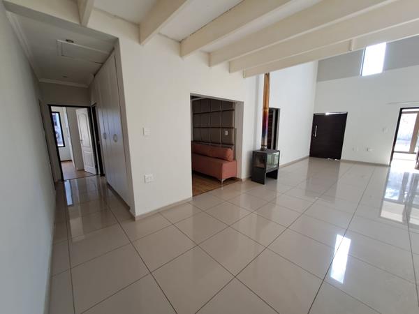 From the entrance into this beautiful home, you will notice the style and elegance leading through into the open-plan living area and kitchen. The modern kitchen offers ample cupboard space with beautiful countertops and a five-burner gas hob and electric oven. The kitchen and scullery have space for a double-door fridge and 2 additional undercounter appliances. A pantry cupboard is in the scullery.