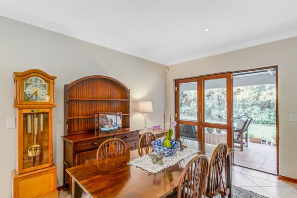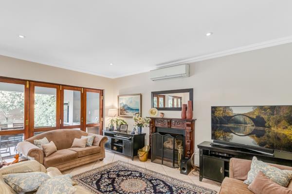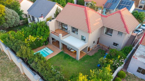 Step through the welcoming entrance into a spacious open-plan lounge and dining area, where a cosy gas fireplace creates the perfect spot for family gatherings. The living space flows effortlessly to a sunny covered patio with a built-in braai perfect for weekend get-togethers and relaxed outdoor living. The patio overlooks a private, established garden with a sparkling pool and kids play gym, making it a true haven for both children and pets to enjoy.