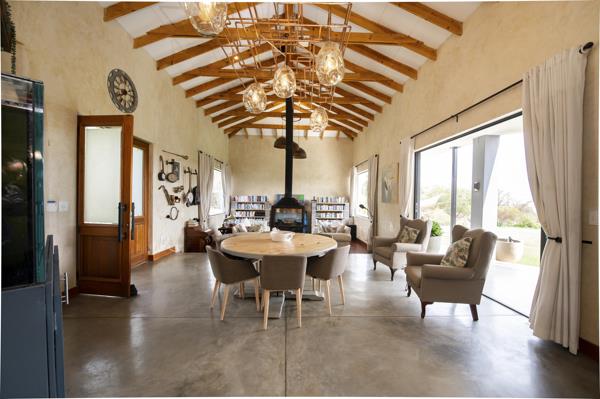 The open-plan kitchen is a standout with a unique polished concrete countertop, and no detail has been overlooked. The spacious scullery has room for all your appliances and includes a plug point with a built-in battery backup.