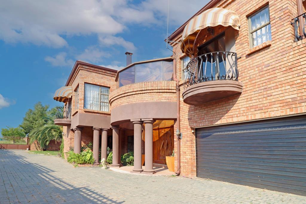 Upstairs, an open-plan landing serves as a family TV lounge and opens onto a large balcony offering sweeping views of Sandton, Steyn City, and the Dome. The upper level also includes a carpeted office, as well as the formal main bedroom with a fireplace, a walk-in mirrored closet with ample cupboard space, and a luxurious full bathroom. Two additional large carpeted bedrooms, each with its own bathroom, complete the upper floor bringing this home to a total of five bedrooms and five bathrooms.