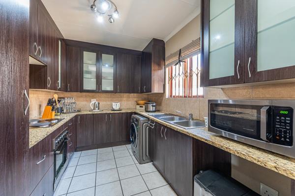 Step inside to a welcoming open-plan layout, where the stylish kitchen seamlessly connects to spacious living and dining areas. A large sliding door opens to your private garden complete with a built-in braai, perfect for hosting guests or unwinding with family.