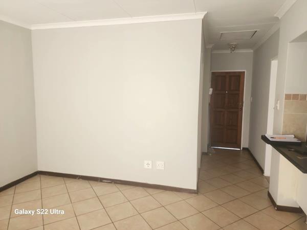 COME HOME TO A COSY APARTMENT, IDEAL FOR THE WORKING CLASS, LOCK UP AND GO OR A START-UP HOME. SAFE AND SECURE 2 BEDS, 1 FULL BATHROOM WITH OPEN PLAN LOUNGE AND KITCHEN WITH SLIDING DOOR ON THE 1ST FLOOR. THE APARTMENT IS VERY CENTRALLY SITUATED CLOSE TO ALL AMENITIES AND THE HIGHWAY TO PRETORIA OR JOHANNESBURG. SAFE PARKING FOR YOUR CAR. AMPLE GROUND FOR KIDS TO PLAY. PRE-AID ELECTRICITY. CALL ME FOR A PRIVATE VIEWING