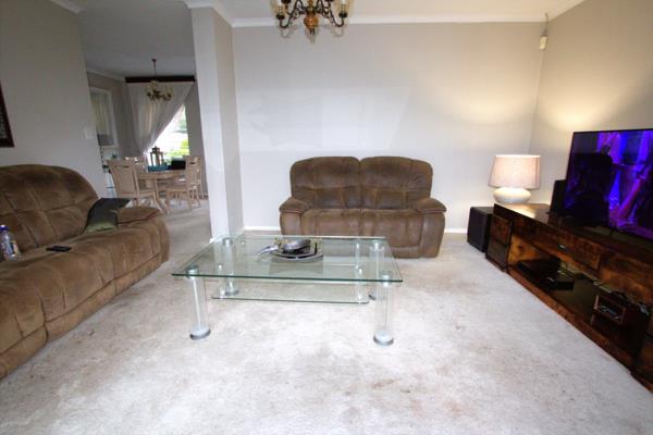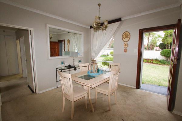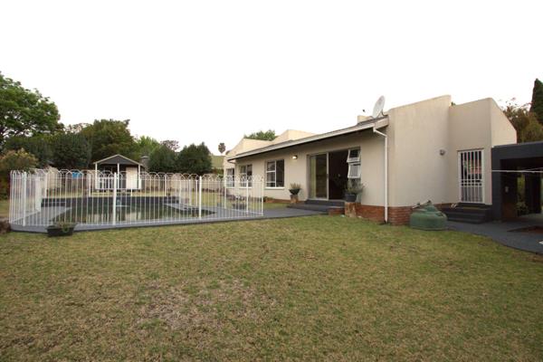 A large kitchen, which has space for multiple appliances is a dream for any cook and is the heart where the family talk about the day while preparing dinner. The home has a dining room area and lounge, which opens up onto the well maintained garden with a closed off swimming pool. The garden stretch all around the house and is perfect for children to play safely in. The garden also has a Wendy house, which can be used as an office.