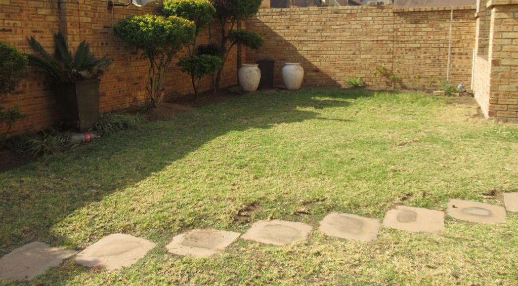 All the rooms from the reception areas to the bedrooms have tiled floors. The rooms are all airy, bathed in natural light and very spacious. The modern kitchen is open plan with granite counter tops, breakfast nook, double sinks, an under counter oven with a glass hob, an extractor fan and ample space for storage and major appliances. The kitchen flows into an open plan lounge that in turn opens onto a covered patio, through sliding glass doors. There is a built-in braai on the patio, perfect for entertaining family and friends. The patio overlooks a private manicured garden.