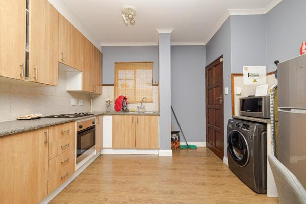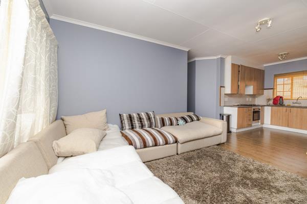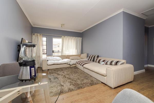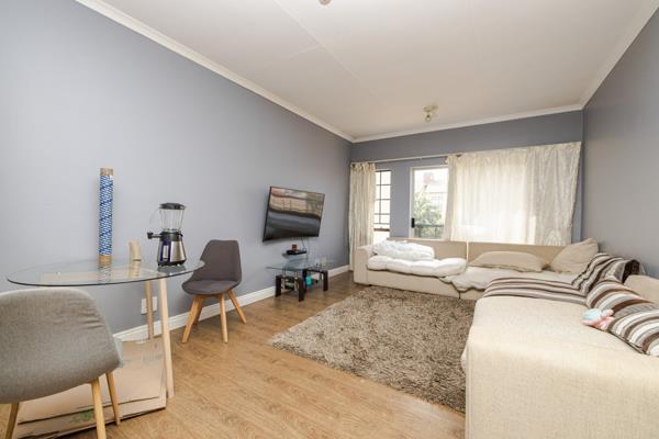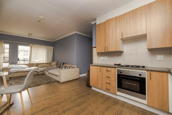 Two elegantly designed bedrooms offer a retreat of tranquility. Thoughtful layout and modern finishes create a comfortable environment, with ample built in cupboard space, one well appointed bathroom fitted with a bath tub and shower, large open plan kitchen seamlessly leading into the open plan lounge and dining room with a Juliette balcony,