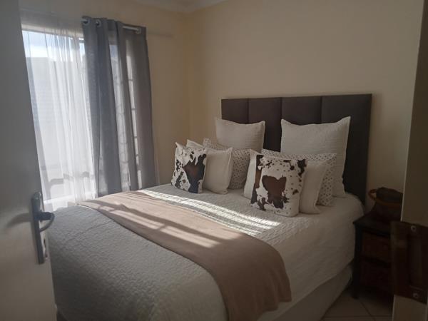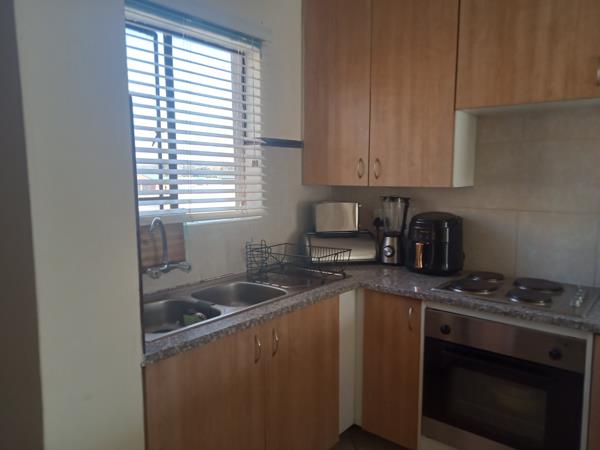 Lovely spacious apartment in Midrand. The open plan kitchen includes built in cupboards, an oven, stove, double basin, space for under counter appliances and a breakfast bar. This leads to the spacious living area and a balcony. The main bedroom is spacious and includes built in cupboards. The second bedroom is reasonably sized and is located across the main bedroom.