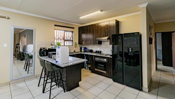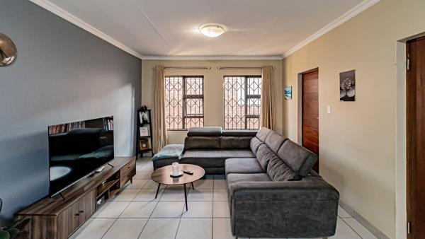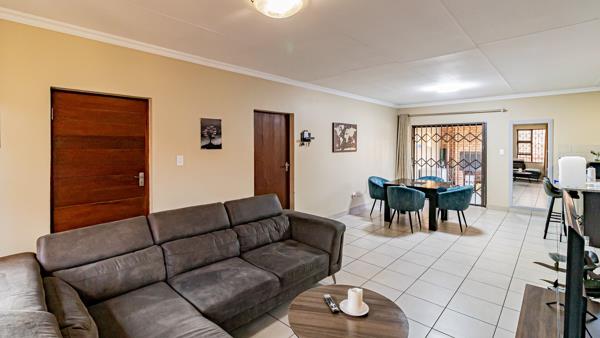The living area leads out to a covered patio fitted with a built-in braai which in turn leads out to a wrap around garden.