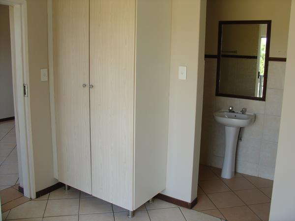 The bedroom has built in cupboards. he kitchen has enough cupboard space.