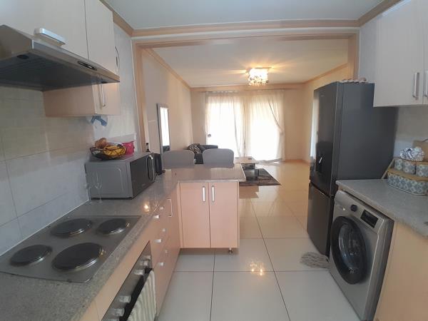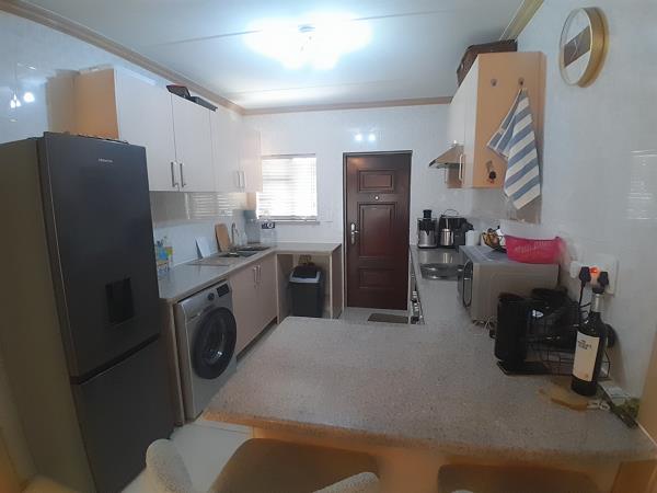 Pristine 2 Bedroom 1 Bath for Sale at Phoenix Regent 2 in Noordwyk . The unit is suitable for live-in as well as investment. It has an open plan light and airy spacious reception with a neat modern kitchen, a free-flowing Lounge with a sliding door leading to a Patio perfect for relaxing, and great views for the sunset and Complex. Its equipped with a kitchen with plenty of cupboard space, a double basin, and space for a washing machine. The Apartment has two spacious bedrooms with fitted wardrobes and a separate full bathroom for Guests.