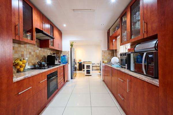 - Open plan kitchen with long running counter tops, ample built in cupboards and two sets of pantry cupboards. The kitchen also offers a separate scullery that allows for all your plumbed appliances as well extra fridges or deep freezes.