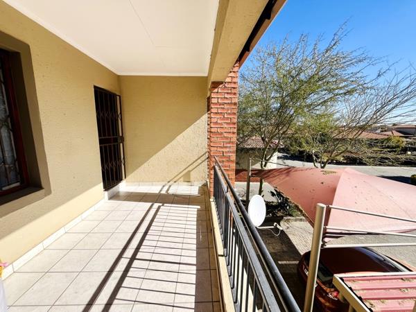 The lounge is open plan and has space to accomodate a small dining furniture. The balcony is spacious and the child can play privately behind a locked gate. You can also have an outdoor braai on this big balcony while chilling outdoors.