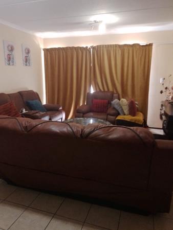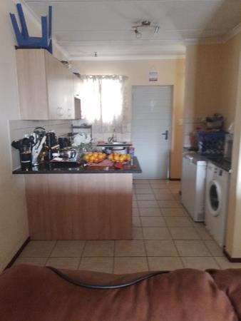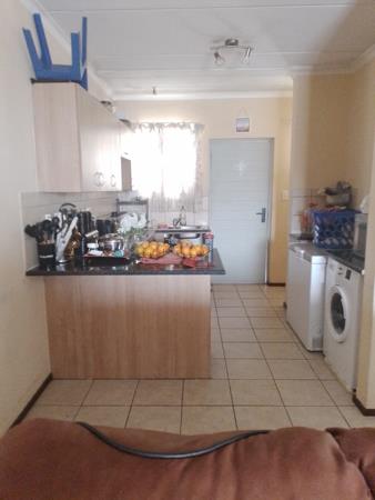 This apartment is a 2-bed, 2-bath top-floor unit. The 2 bedrooms feature fitted wardrobes, with the main bedroom being an en-suite with its own bathroom, complete with a tub, basin, and chamber. The second bathroom has a sink, chamber, and shower. The kitchen boasts fitted cupboards and opens into a lounge area with a sliding door leading to a balcony. This apartment is ideal for families and investors alike. The complex offers amenities such as a braai area, pool, 24-hour security guards, and designated parking.