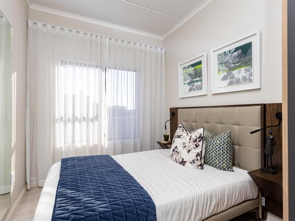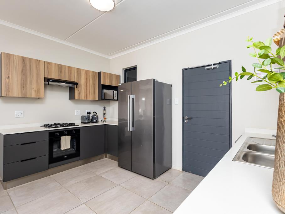 The open layout creates a welcoming atmosphere, with each bedroom offering built-in cupboards for efficient storage. The master bedroom provides a private retreat with its own ensuite bathroom, while the second bathroom ensures comfort and convenience for family or guests. The kitchen is equipped with a gas stove, powered by the estates central gas system, making meal preparation both easy and enjoyable. The unit also includes a gas geyser, ensuring you always have hot water on demand.