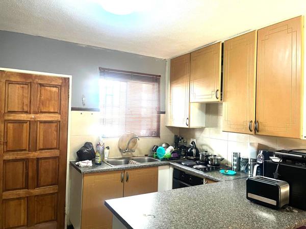 The living area flows seamlessly into a covered patio, great for a Sunday afternoon braai, extending into a well- manicured communal gardena peaceful space to unwind.