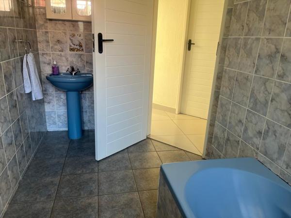 The property offers three well-sized bedrooms with built-in cupboards. Two childrens bedrooms share a neat family bathroom, while the main bedroom includes a private en-suite. An additional room can serve as a study or a fourth bedroom, depending on your needs.