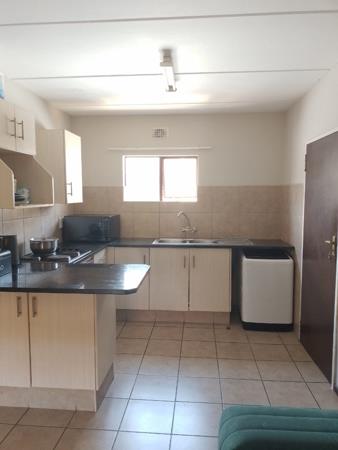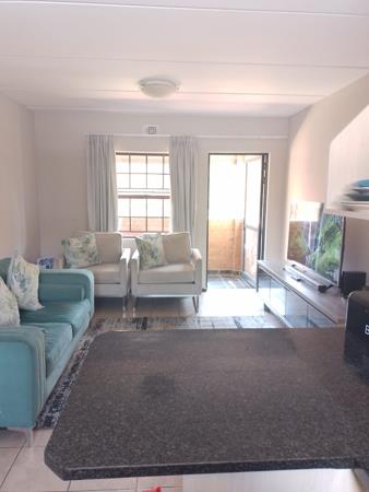 Beautiful 1st-floor 2-bedroom apartment with 1 bathroom. Open-plan lounge and kitchen with fitted cupboards. Passage leads to bathroom with sink, toilet, and tub. Both bedrooms have fitted wardrobes. Complex has tight security, kids'' play area with a tuck shop, and a sitting area with a view
