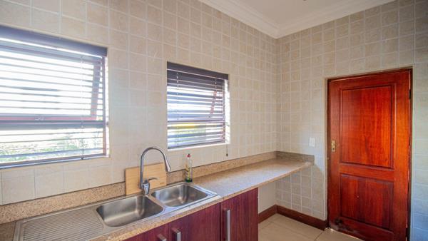 Downstairs features a formal lounge and a cosy TV lounge, both opening onto the patio for easy indoor-outdoor living. The open-plan dining room is perfectly positioned alongside the t kitchen, which boasts granite countertops, an eye-level oven, gas hob, breakfast counter, and a separate scullery for added convenience. A private study offers the ideal work-from-home setup, while the guest bedroom and separate bathroom provide comfortable accommodation for visitors.