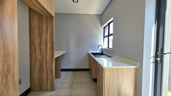 This modern home offers: 3 bedrooms and 2.5 bathrooms. Open plan living rooms which will include the kitchen with a separate scullery . Set in a garden of 450 square meters, Ideal for first time home owners WITH A POOL.