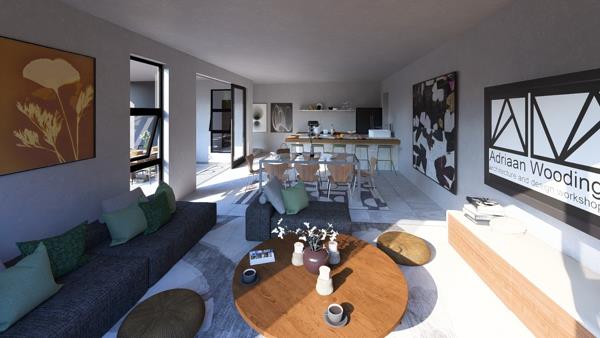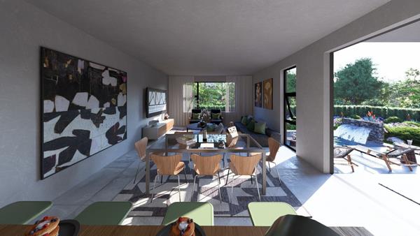 Modern kitchen with easy flow to the dining and lounge spaces