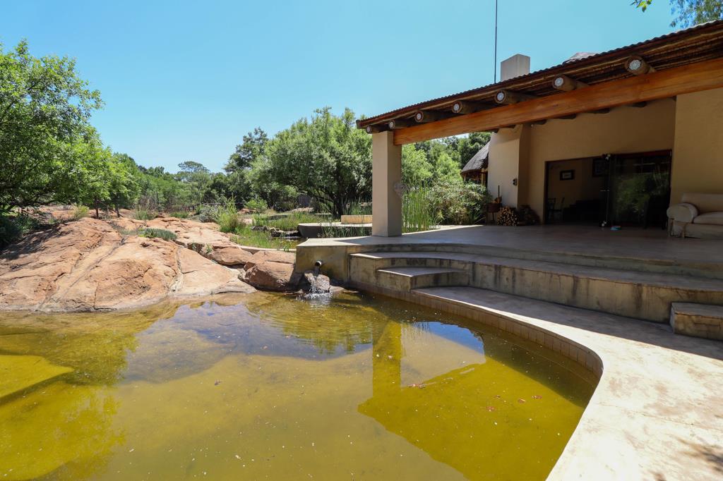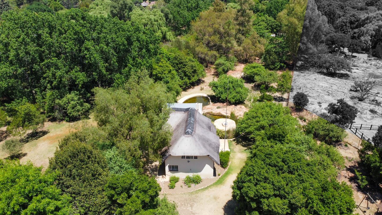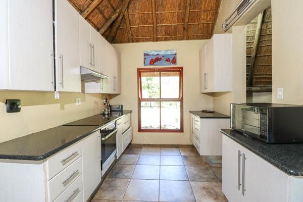 Tucked away on a spacious agricultural holding within the secure Guinea Fowl Estate, this unique thatch-roofed property offers the perfect opportunity for those seeking space, tranquillity, and the chance to enjoy a home with character. Accessed right at the end of a pan-handle driveway, the property welcomes you to a secret garden.