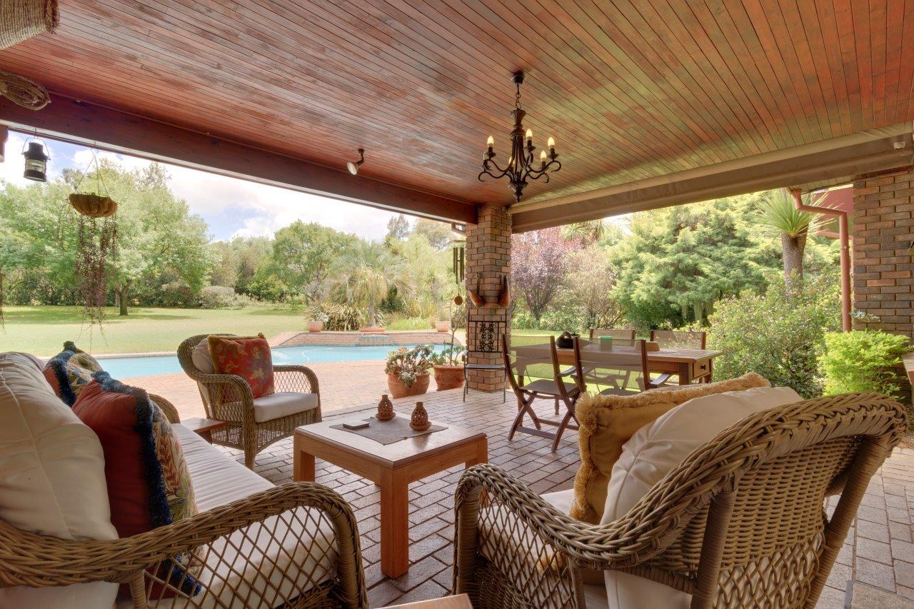 Indulge in the sanctuary of the main bedroom, a personal haven graced with an en-suite bathroom boasting a bath that overlooks a secret garden adorned with a soothing water feature and pond. Three additional bedrooms, a study, and a full bathroom provide ample space for family or guests. The heart of the home, a spacious kitchen, comes equipped with a walk-in pantry, a separate scullery and enclosed courtyard. Wooden cottage pane doors enhance the classic charm, while slam lock gates and burglar-proofing offer utmost security and peace of mind. Not just a residence, this property embraces a complete lifestyle. An inviting water feature at the entrance sets the tone, while a fully-contained one-bedroom cottage with a convenient carport, domestic quarters, a double garage, and carport further complement the expansive offerings. Embrace sustainability with a 12-panel solar system and a borehole, ensuring self-sufficiency and environmental consciousness.