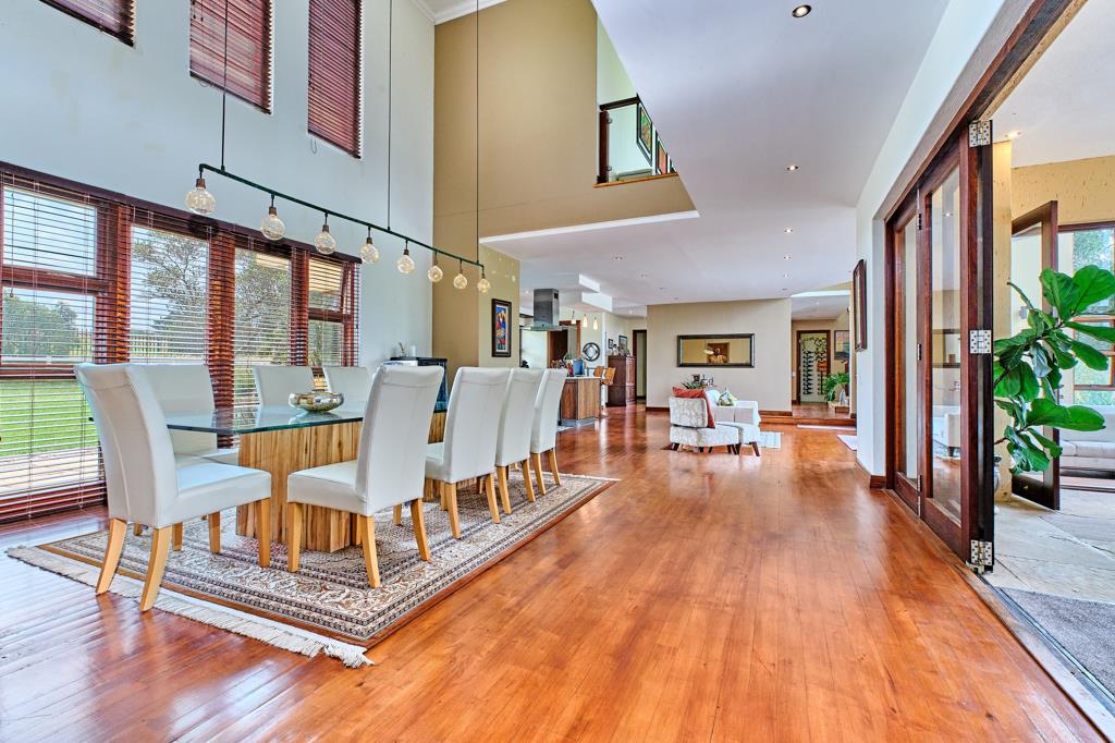 A double volume tandem double garage is home to a complete golf simulator which will remain for the purchasers to enjoy and improve their game. Additional features include air conditioners, lighting automation, Sun Synk solar sytem x 2 Lithium 8.5 KW batteries, three phase electricity, a strong borehole with solar pump and filtration system, irrigation from the dam and/or the borehole, PVC fencing, double staff accommodation each consisting of kitchen, bedroom and bathroom. The swimming pool has a solar blanket and heat exchanger pump. The ride-on lawnmower as well as the golf cart with garden trailer are included in the sale to ensure a smooth transition and allowing maintenance of the garden to continue unabated. This truly magnificent homestead, is waiting to be enjoyed and to be a source of entertainment to family and friends. Come and view to experience the true ambience, and witness the dream.