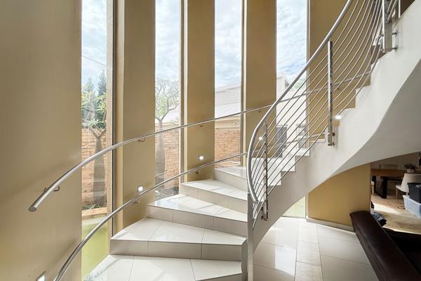 Be welcomed by a grand entrance with an abundance of natural light, featuring a stunning spiral staircase. Open-Plan living, the reception rooms seamlessly flow into an enclosed patio with a built-in bar, perfect for relaxing and entertaining while overlooking the pool and expansive garden. Kitchen with sleek granite countertops, a central islandbreakfast bar, scullery, and pantry cupboard for ultimate convenience.