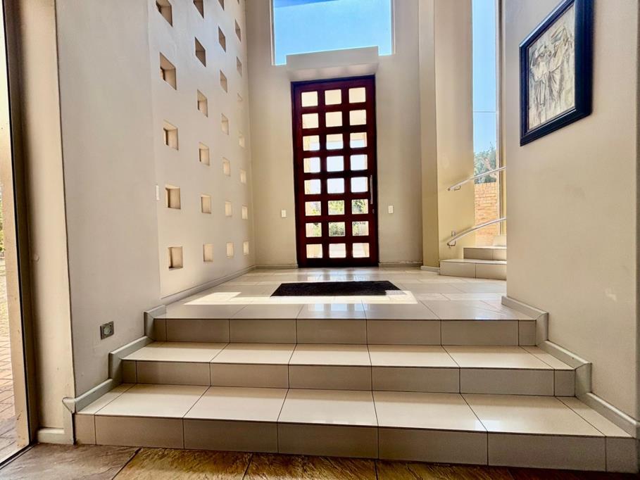 The exterior of this estate residence is equally impressive, set on a substantial 1.25-hectare erf that provides ample space for outdoor activities and equestrian pursuits. The property features a triple garage and six additional parking spaces, accommodating a significant vehicle fleet. Outdoor living is elevated by a spacious patio, a sparkling swimming pool, and an inviting deck, perfect for relaxation and al fresco dining. A built-in braai enhances the entertainment capabilities, while the meticulously landscaped garden offers a tranquil backdrop. Multiple balconies provide scenic views of the surrounding estate, further enriching the living experience. Practical amenities such as paving, a well-maintained driveway, and a borehole contribute to the property''s self-sufficiency and aesthetic appeal. The pet-friendly environment ensures that all family members can enjoy this exceptional setting.