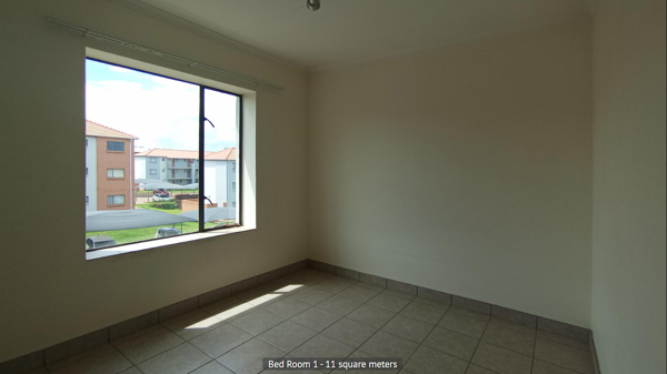 Residents will appreciate the convenience of two dedicated parking bays within the complex. While the views from the balcony overlook other apartment buildings and the parking area, the focus remains on secure, comfortable living. This desirable Midrand suburb offers convenient access to amenities and major routes, making it an ideal location for professionals and small families seeking a well-connected home.