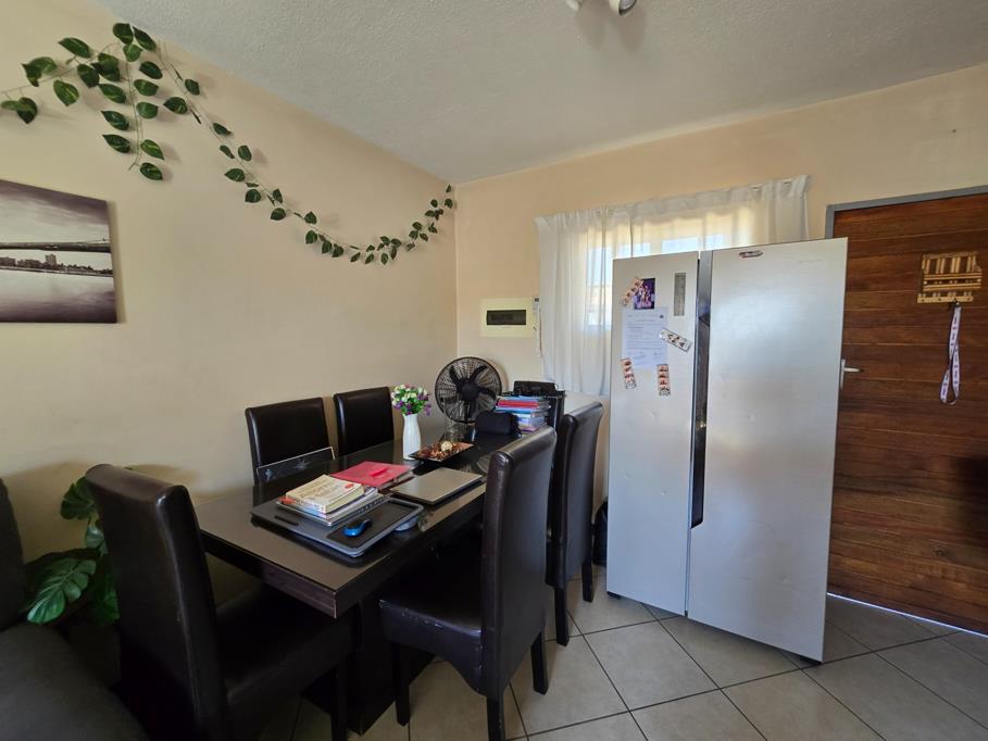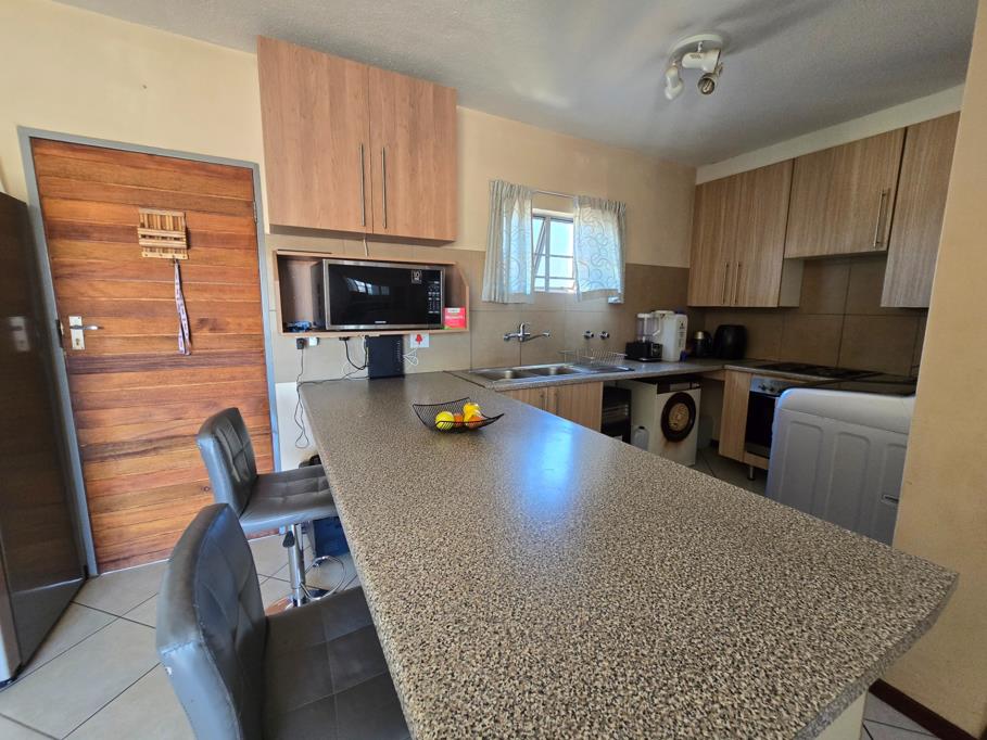 The open-plan kitchen, dining room, and lounge are designed with a harmonious color scheme and ample storage space. The kitchen is equipped with everything you need to make cooking a pleasurable experience, including plenty of space for your cutlery. The dining area can comfortably accommodate a six-seater dining table. The spacious lounge is ideal for creating a beautiful home entertainment setup and is DSTV and Fiber ready.
