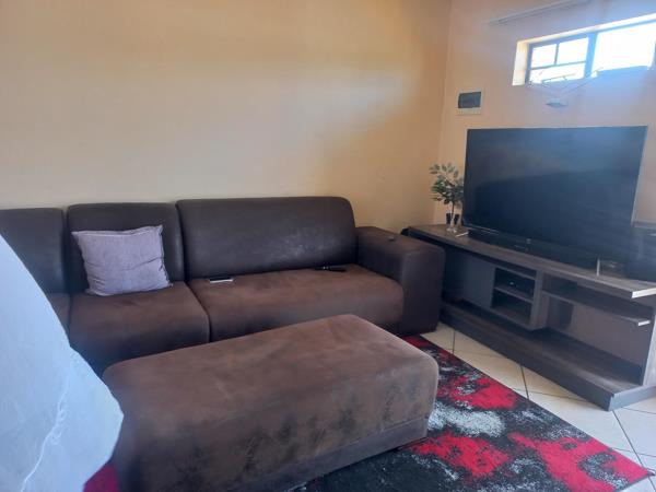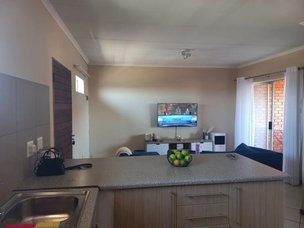 This apartment features two generously sized bedrooms with built-in cupboards, both tiled for easy maintenance, and a full bathroom with contemporary finishes.