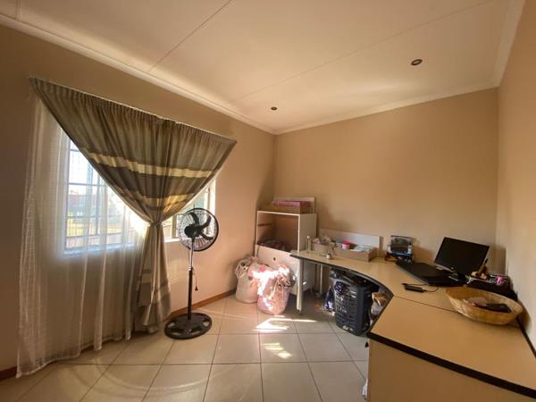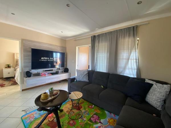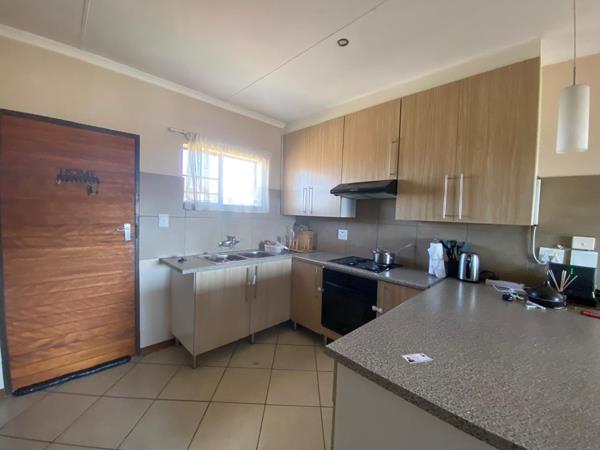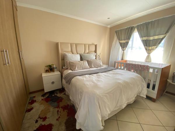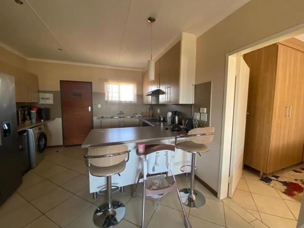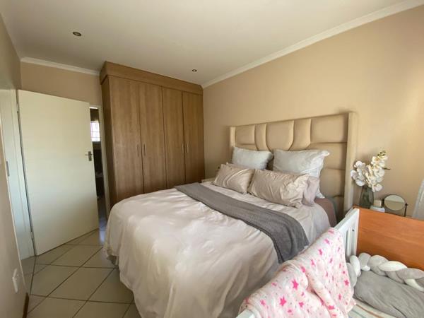 Safe and secure cluster townhouse home within the security precinct of Crescent Glades Estate. The home features a large, spacious open plan living area, leading out onto an enclosed, covered sunlit patio. This 3 bedroom 2 bath townhouse features a large open plan kitchen with breakfast nook, ample cupboard space, plumbing for 3 wet appliances, fitted hob, undercounter oven and extractor fan. The home is tiled throughout and the main bedroom has a full MES bathroom. There is a second full family bathroom adjacent to the 2 other well sized bedrooms.