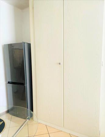 The apartment has an open-plan setting, creating a sense of spaciousness. With a neat kitchen, facing the bed area which then leads to the sliding door which offers views of the complex, providing a peaceful atmosphere.