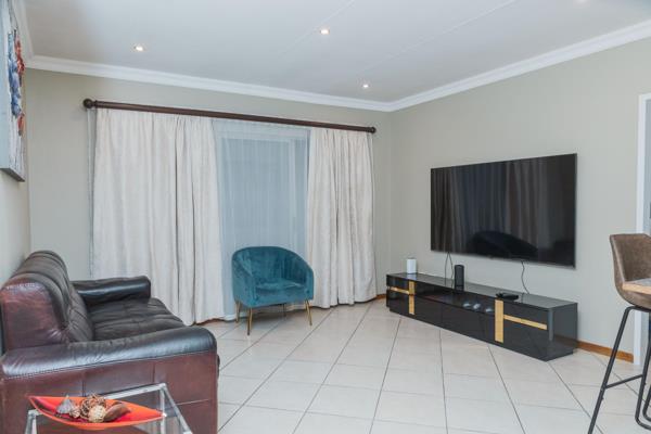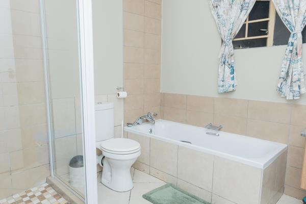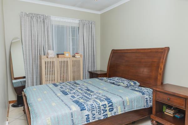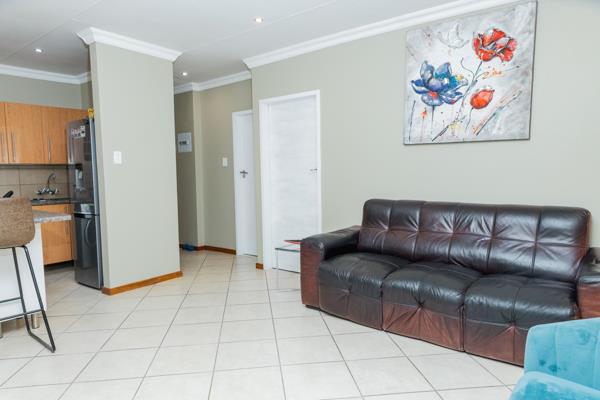 This spacious second-floor apartment offers modern comfort with two bedrooms and two full bathrooms, including a main ensuite. The open-plan living area features a lounge with breakfast bar and a well-equipped kitchen with an electric hob, under-counter oven, and space for both a washing machine and dishwasher, along with ample built-in cupboards. A private balcony provides a relaxing outdoor space with views, while tiled flooring flows throughout for easy living. The secure estate includes 24-hour security, electric fencing, a double garage, and access to a communal pool and clubhouse.