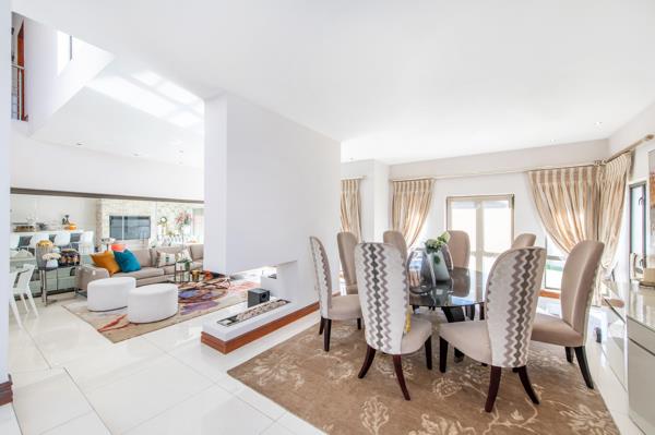The living room is an inviting space featuring a fireplace that adds warmth and charm. Adjacent to the living room is a sophisticated dining area with ample space for hosting dinner parties or family gatherings.