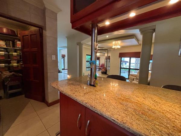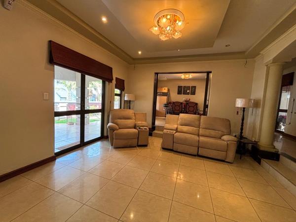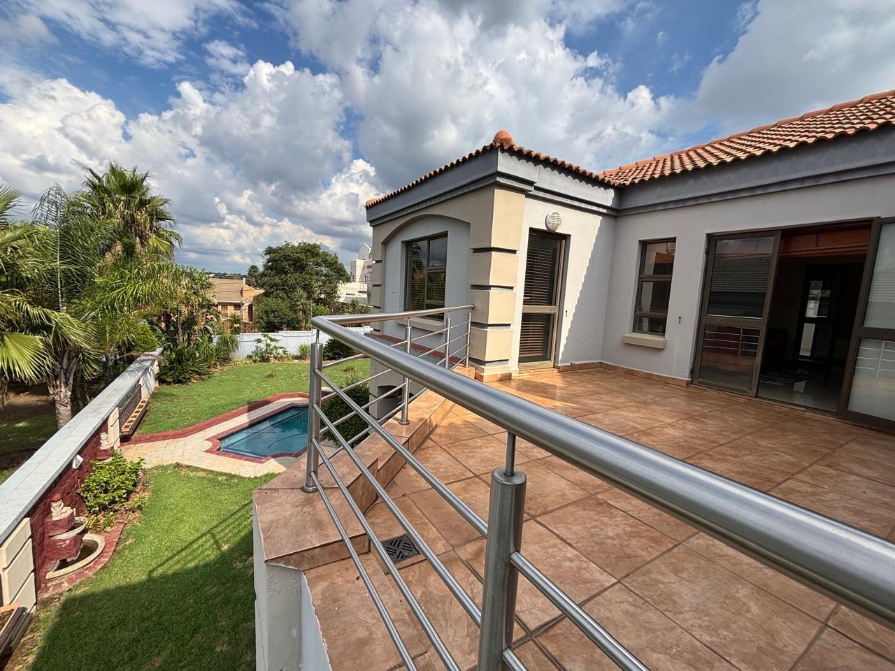 Discover this expansive 4-bedroom, 4.5-bathroom residence spanning 486 sqm in Savannah Hills Estate, Midrand. It features three lounges, a dining room, and a family TV room, all with tiled flooring and natural light. The spacious kitchen offers extensive cabinetry, granite-style countertops, a breakfast bar, and a pantry. A dedicated study is also present. Outdoors, a large tiled patio, private garden, and swimming pool await. This pet-friendly property includes a triple garage and ensures peace of mind with 24-hour security and access gates within the estate.