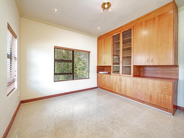 This home comes with 4 large bedrooms all with en-suite bathrooms, ample cupboard space, 3 bedrooms are upstairs with the guest bedroom downstairs. The master bedroom is spacious, has a pyjama lounge, a walk in closet and opens onto the balcony.