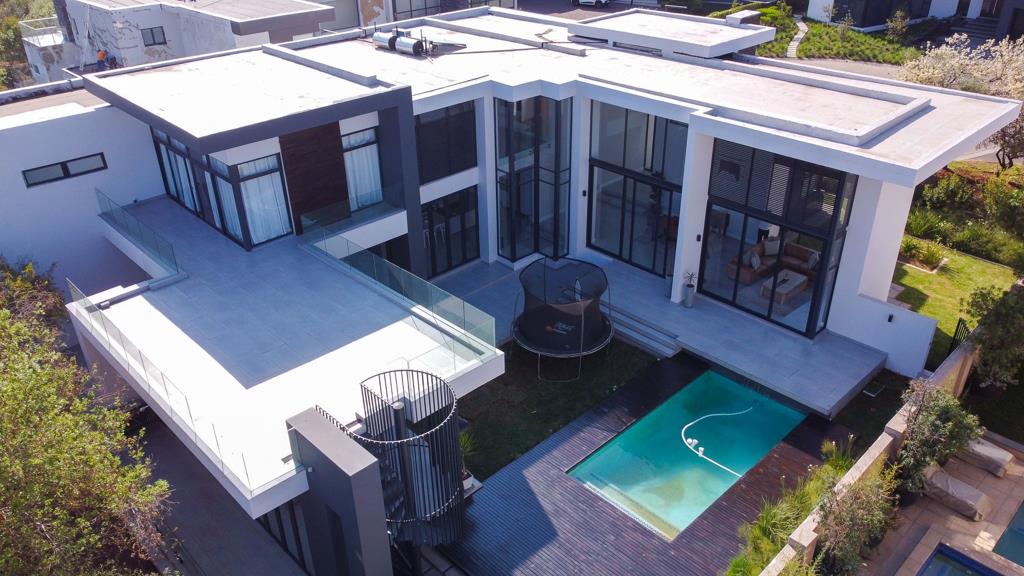 Experience the epitome of luxury in this modern contemporary 4-bedroom, 4-bathroom home in Steyn City, showcasing the architectural excellence expected from high-end residences. Flooded with natural light, this home offers a harmonious blend of style and functionality. The ground floor features an en suite 4th bedroom, a study, and an expansive open-plan living area, seamlessly integrating a fully equipped kitchen with Caesarstone countertops, gas hob, built-in ovens, fridge, and a separate scullery.