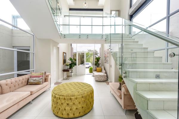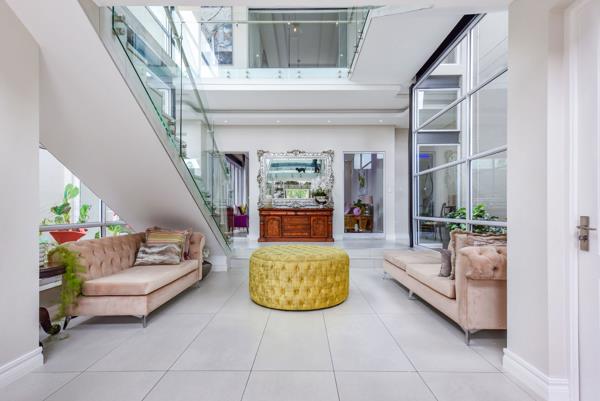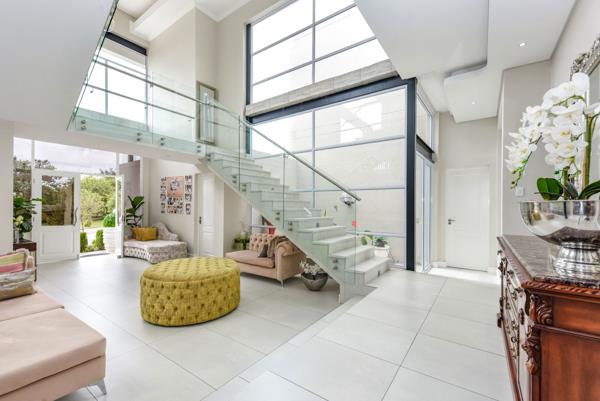 A striking double-volume entrance and lounge immediately set the tone, enhanced by expansive glazing that floods the interiors with light. The open-plan living areas connect seamlessly to the outdoor entertainment space via stacking doors, leading to a sparkling pool and private gardenperfect for relaxed gatherings and summer living.