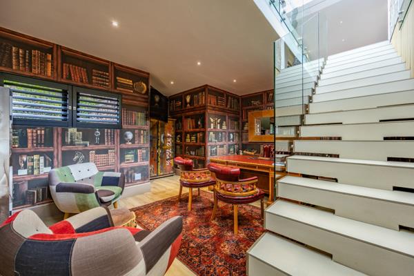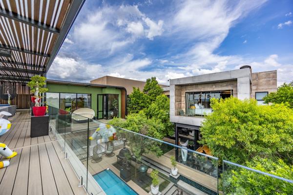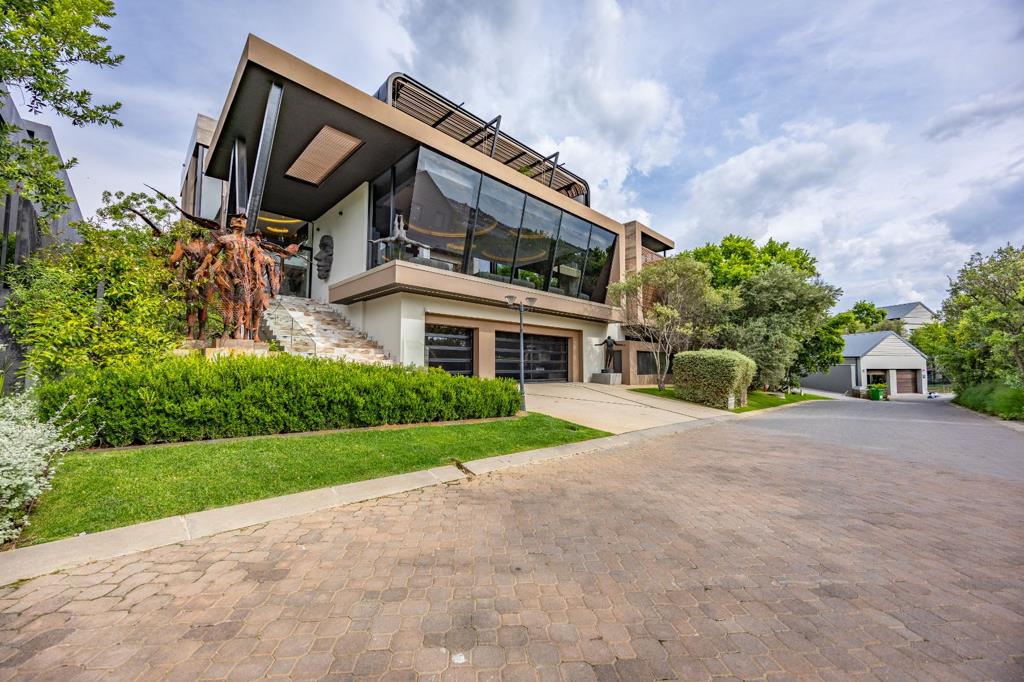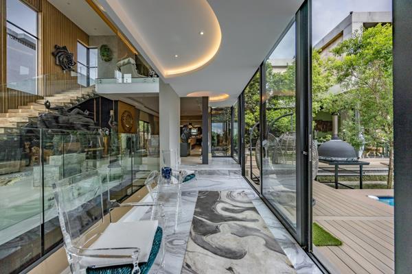 Discover unparalleled modern living in this striking multi-level residence located within the prestigious Steyn City, Midrand. This home boasts a contemporary architectural design, featuring a harmonious blend of materials and textures, complemented by abundant natural light flowing through large windows and sliding glass doors. The open-plan layout seamlessly connects the living spaces, including a lounge, dining room, and a well-appointed kitchen with a pantry, all enhanced by air conditioning and special lighting.
