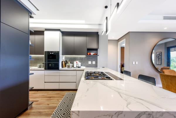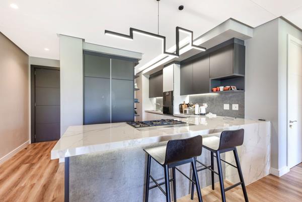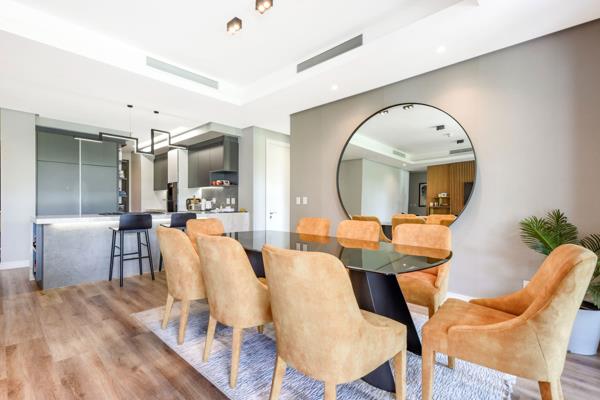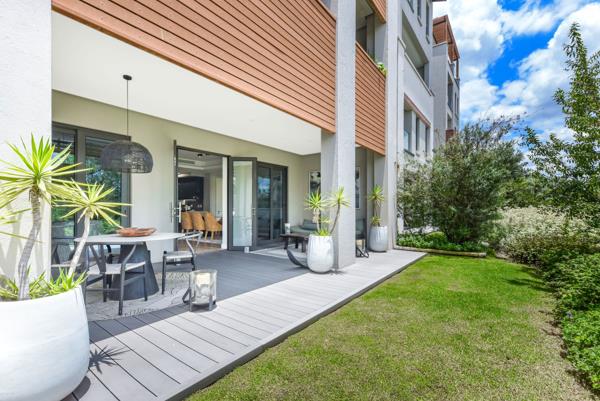 North-Facing Luxury with Private Garden. Perfectly positioned in the heart of Steyn Citys iconic City Centre, this north-facing, ground-floor 3-bedroom, 2.5-bathroom garden apartment offers an exceptional blend of contemporary design, comfort, and lifestyle convenience. Thoughtfully curated for modern living, the apartment features sleek vinyl flooring, full climate control, and generous proportions throughout.