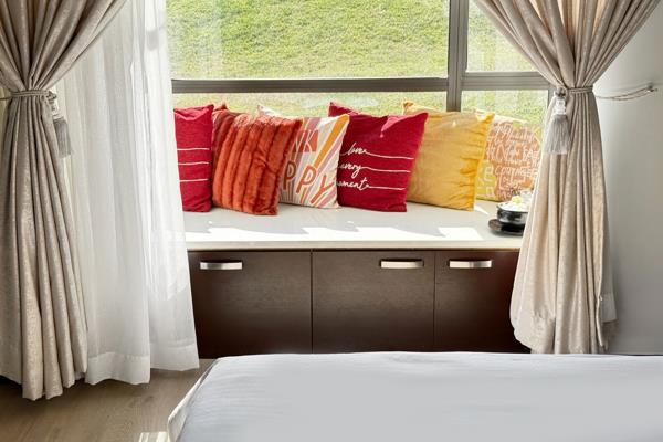 Step into a spacious, light-filled home where comfort meets style. The open-plan kitchen is a chefs delight, offering modern finishes, ample built-in cupboards, generous counter space, and room for two appliances plus a double-door fridge. Its equipped with an extractor fan, hob, and oven, ensuring effortless meal prep. The kitchen flows seamlessly into a bright and airy lounge enhanced by elegant fittings, opening out to a covered patio that overlooks the beautifully landscaped communal gardensperfect for relaxing while enjoying the tranquil sounds of nature.