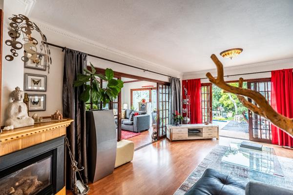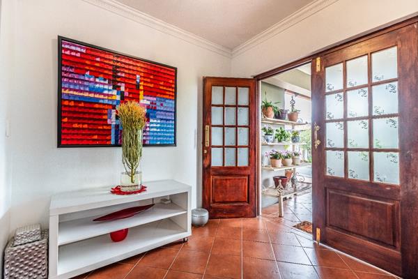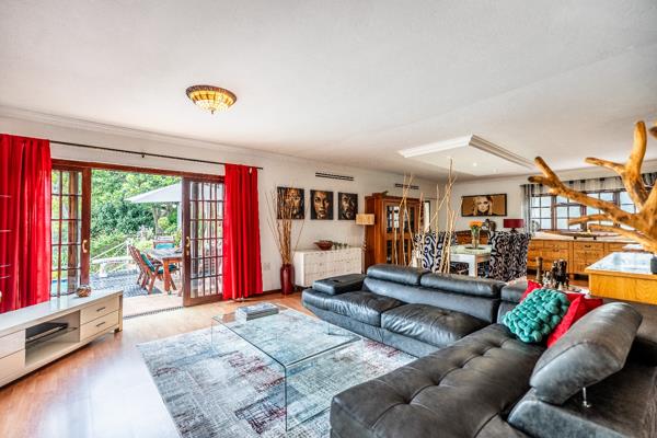 Stacking glass doors opening to a covered patio with views of themanicured garden, sparkling salt pool, and boma area complete with pizza oven and outdoor braai an entertainers dream.