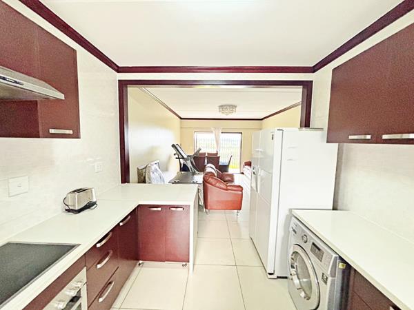 The spacious open-plan lounge and dining area flow effortlessly onto a covered patio, creating an inviting space for both relaxed evenings and stylish entertaining. Tiled throughout, the apartment delivers a sleek, contemporary aesthetic with the added benefit of low-maintenance living.