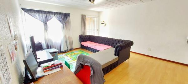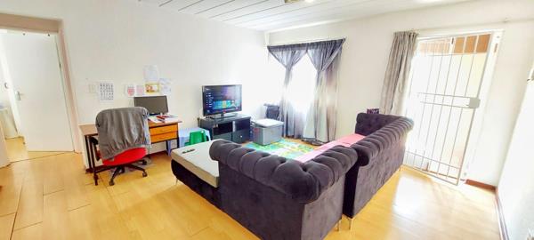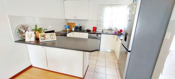 The two bedrooms are serviced by a well-appointed family bathroom featuring a bath with a handheld shower, sink, and toilet. Nestled within a secure complex, this residence is conveniently located near Waterfall Ridge Shopping Centre, home to a variety of shops including Food Lover''s Market, Westpack, and Streatery, as well as being in close proximity to Mall of Africa.