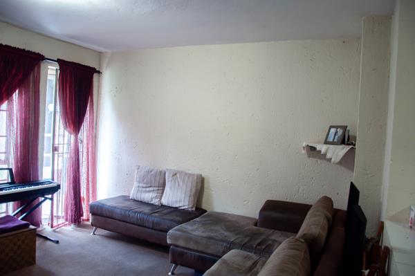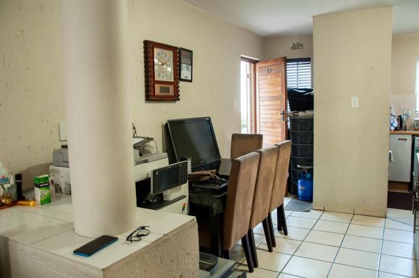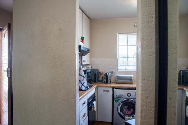 This immaculate ground-floor unit offers an open-plan kitchen with plenty of cupboard space and space for a single-door fridge and 1 counter appliance. The spacious open-plan lounge dining area is located just off the kitchen.