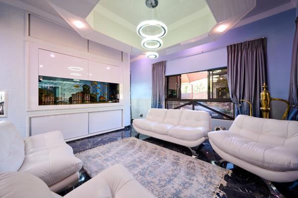 - The entrance to this home boasts a lounge that immediately casts a spell on you with its enormous aquarium. Its a formal lounge that is intended create a calming effect as soon as you enter this home.