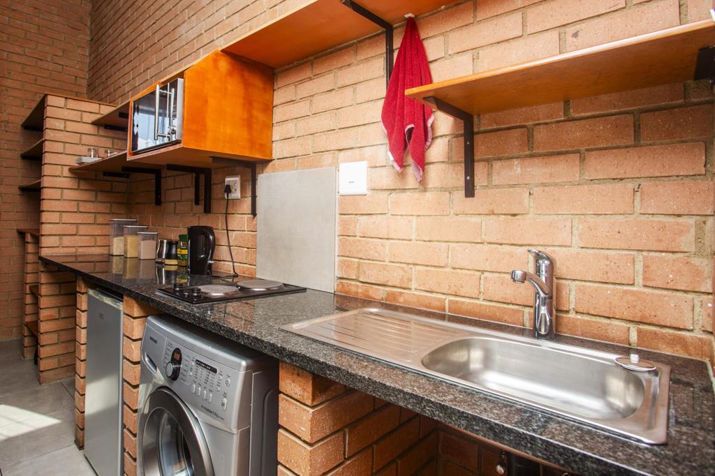 The main living area serves as a multi-functional lounge/bedroom with beautiful views of surrounding greenery. A standout feature is the loft-style nook, accessed by a steel ladder, ideal as a cozy bedroom, home office, or extra storage.